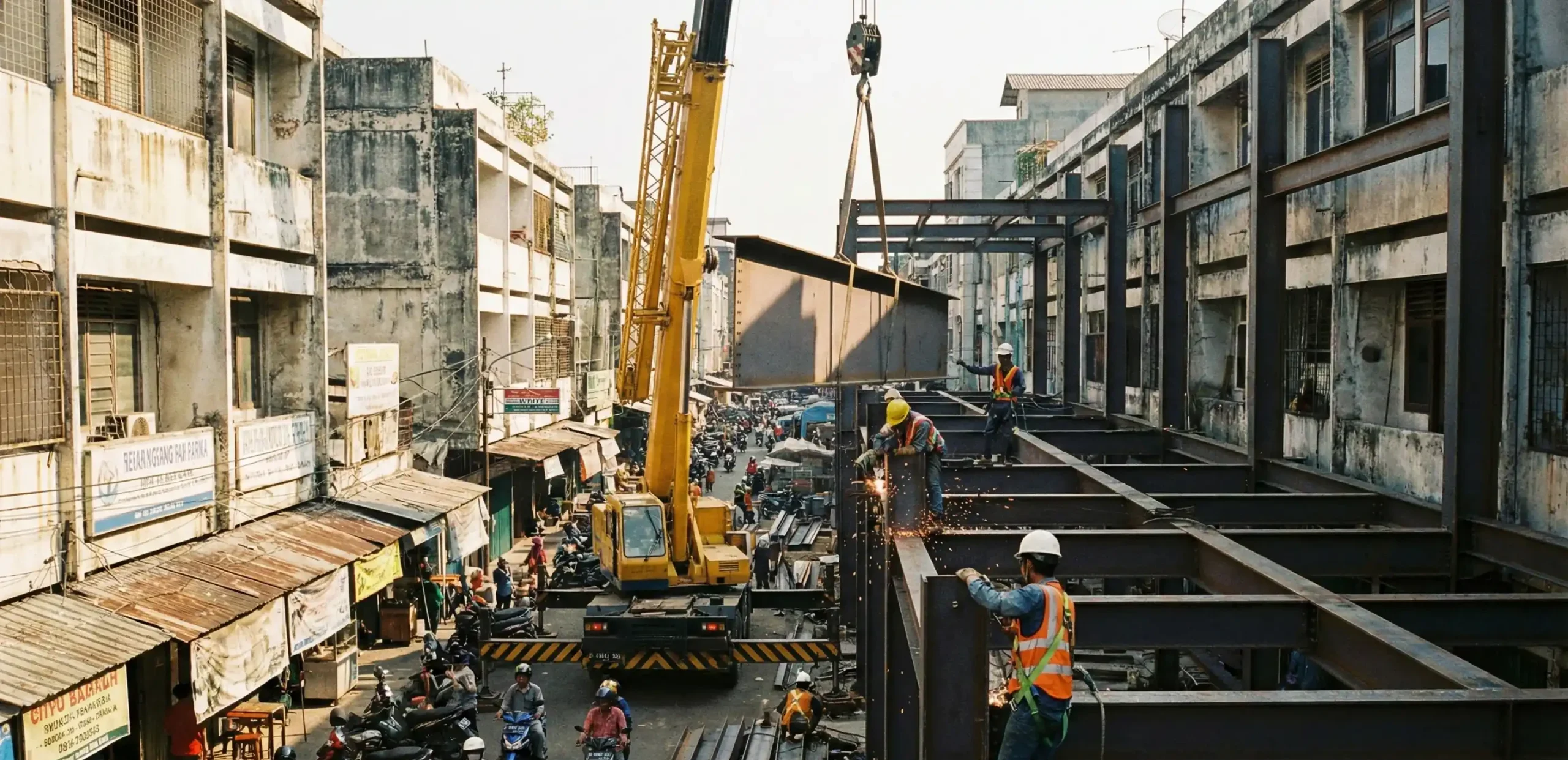 Klien PT. Prima Investa memiliki keresahan utama Lahan proyek berada di tengah area komersial Jakarta Selatan, yang menuntut waktu pengerjaan yang ekstrem cepat agar segera menghasilkan return of investment (ROI).khawatir proyek akan molor lebih dari 6 bulan akibat kesulitan logistik dan efisiensi struktur beton konvensional. Kekhawatiran ini diperparah dengan risiko kemacetan dan jam kerja terbatas di lokasi.