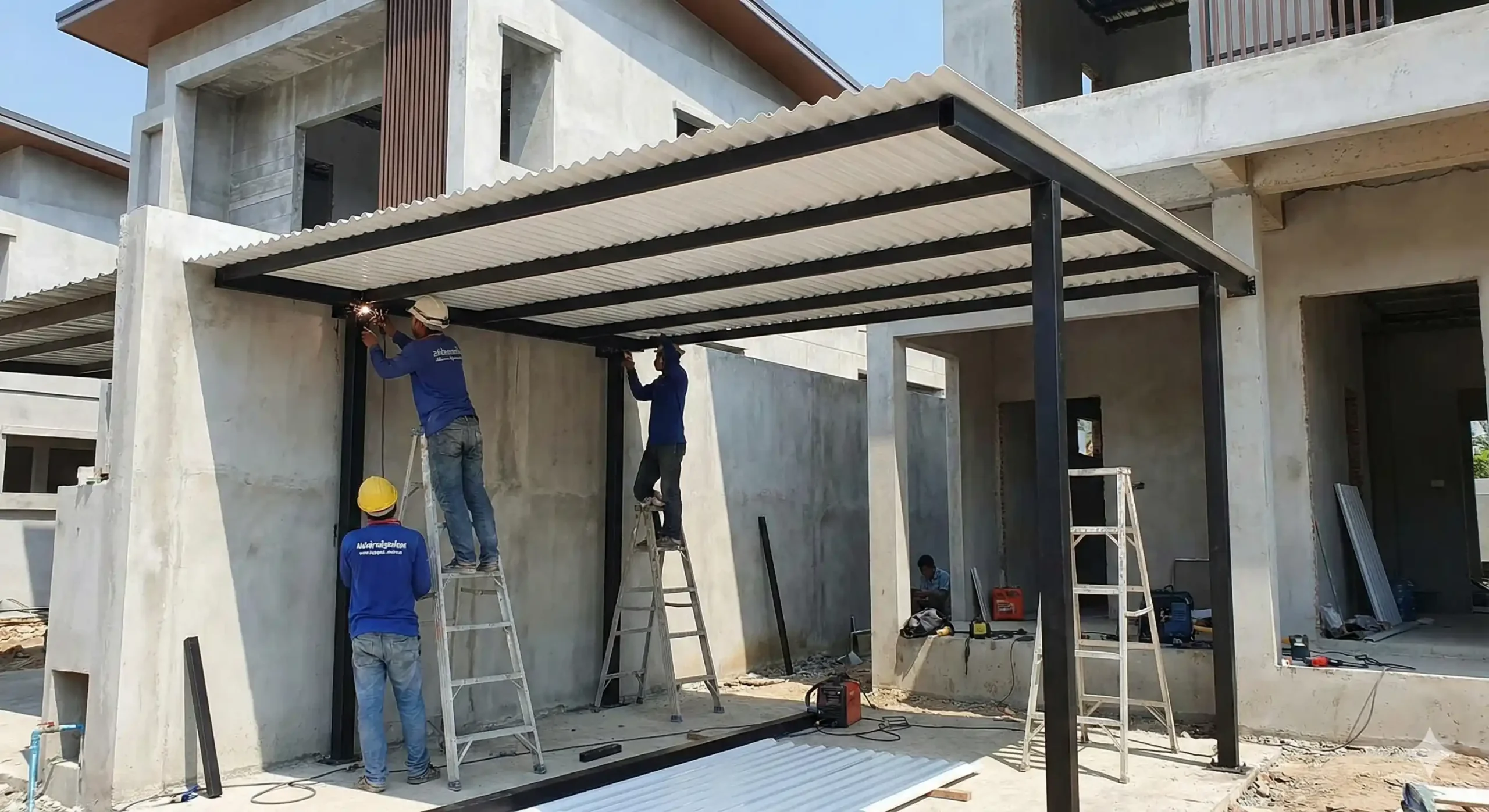 Struktur Kanopi Carport Baja Holo 50x100mm (Minimalis) dengan Atap Alderon RS